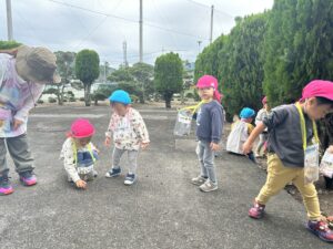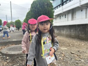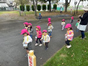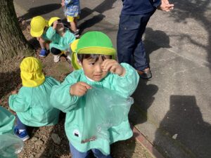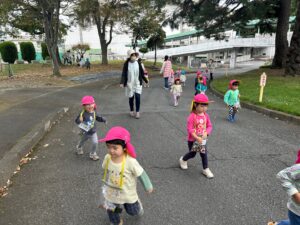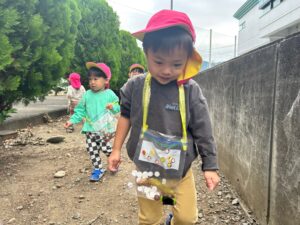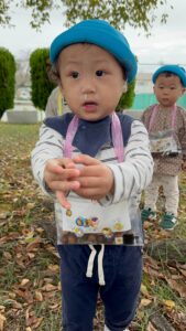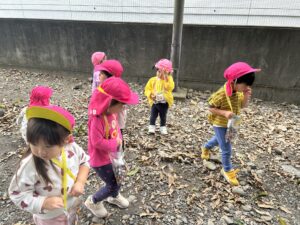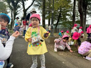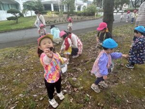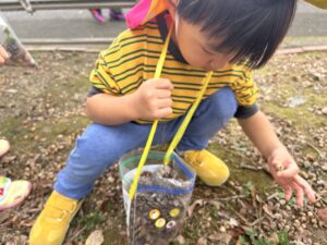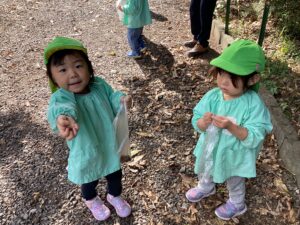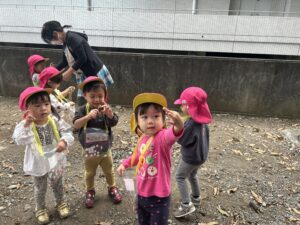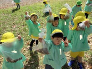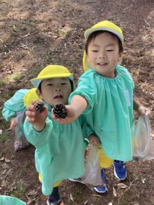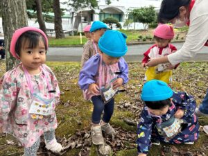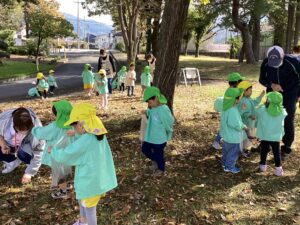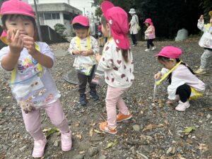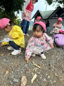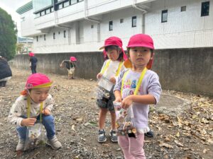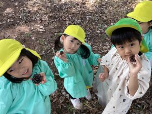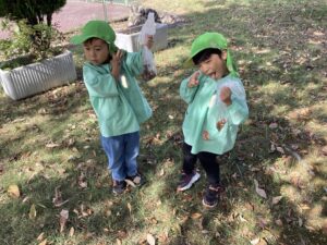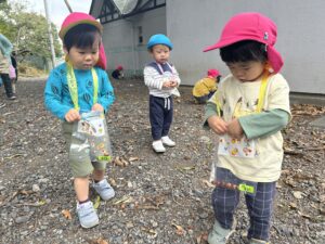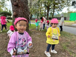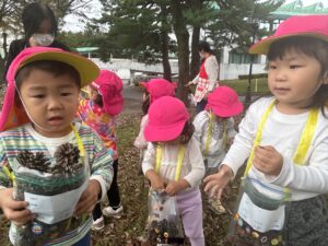ひな・たまご組さんのどんぐり拾いの話を聞き、年少組も急遽文化体育センターへどんぐり拾いに行ってきました!