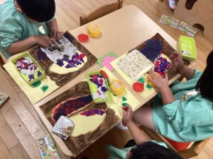 先日行ったいもほり遠足を思い出しながら、いも制作に取り組みました。
