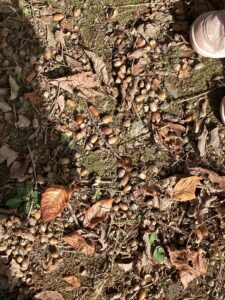 「運動会やったところだ〜🎵」と振り返りながら歩いていくと、たくさんのどんぐりが!!