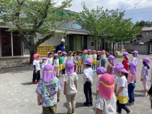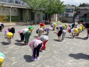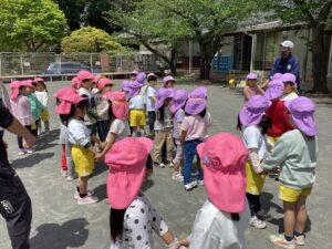 他の学年の子ともじゃんけんをして、どんどん長くなる電車で繋がって歩くのが難しそうでしたが、年長さんが優しくリードしてくれました![]()