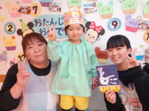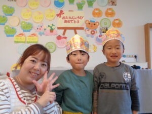 つばめ組4名 ひよこ組1名 ひつじ組1名 ぞう組1名 保育教諭3名 です。