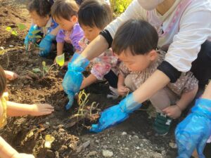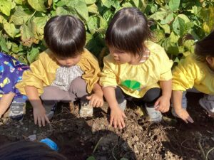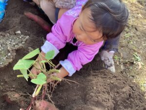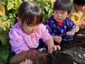 いも畑では、お家の方と力を合わせて、土を掘ったり、やさしくおいもを揺すったりして、たくさんさつまいもが採れました🍠🍠🍠🍠🍠