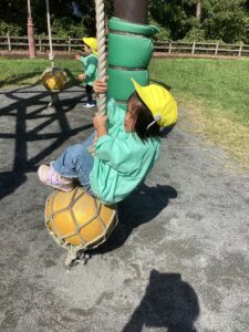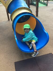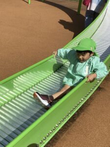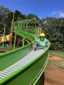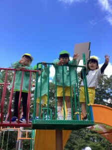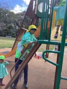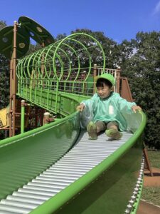 どんぐり拾いの予定でしたが、どんぐりがあまり落ちていなかったことにより、ミューズパークでの遊具あそびに変更となりました