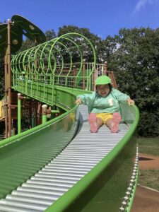 ローラーすべり台では、「たのし〜!」「おしり痛かった〜」「もう一回やってくる!」と、とても楽しそうな様子