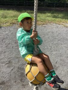 園にはない遊具に、ワクワクの表情で、元気に遊び始めます