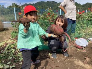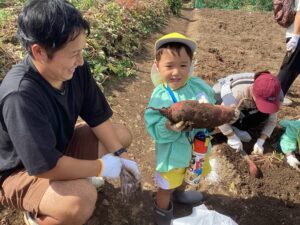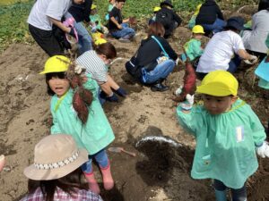 いも畑では、お家の方と力を合わせて、土を掘ったり、やさしくおいもを揺すったりして、たくさんさつまいもが採れました🍠🍠🍠🍠🍠