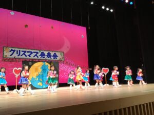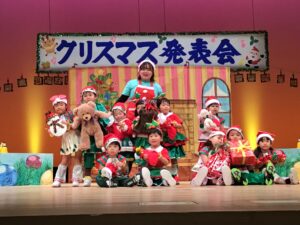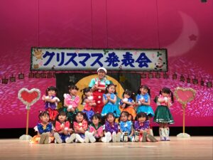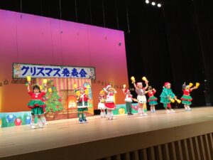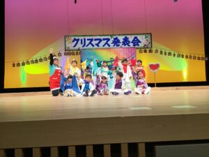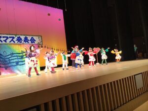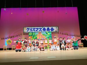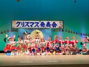 12月12日金曜日、市民会館の大きな舞台にて行われたクリスマス発表会。子どもたち1人ひとりの成長が輝き✨お家の方には衣装のご協力を・そして役員の皆さまのお力をお借りして無事終えることが出来ました。皆さまのご協力ありがとうございました♪